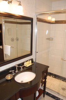 Comfortably rested, I awoke the next morning ready for the day. It began in fine fashion, too, with the option of a drop-down shower head in the bathroom. So rarely do I see the option – a normal shower head is also available – to have the water fall straight down on me, that I was almost giddy with anticipation to get up and into the shower. I suppose it is a good thing, too, since I had to take a second shower in the morning; instead of lotion, I accidentally grabbed the conditioner bottle after my morning shave.