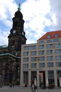 understood on the room service menu. I vowed it would be different this time, staying at the NH Altmarkt, and that I would see more of the city than what was visible from my hotel room window.Two days after checking in, I left Dresden pleased with seeing more of the city while balancing my time spent in the NH Altmarkt during my RIAS Berlin Kommission trip. The hotel, located across the street from the Kreuzkirche (left) on Kreuzstrasse, is right on the edge of everything – it is a quick walk to all of Dresden’s best churches and museums. And as is always the case with hotels, the location is the most important consideration.