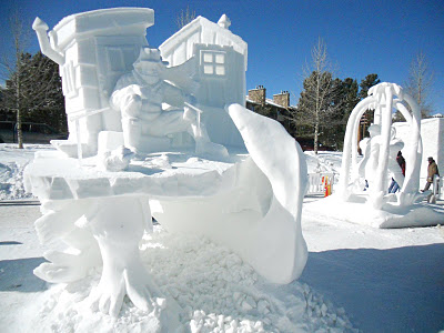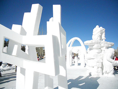 hat international teams had spent all week working on. I had heard from friends and coworkers that it was a great must-see event for any Coloradoan in the winter.We quickly arrived at the small event plaza after a free shuttle bus ride from the parking lot on the edge of town. It was a beautiful, albeit frigid, day and I was excited to see the sculptures. We were there on the first day after they were completed and on display; the sculptures will remain on display through Sunday, February 5th.