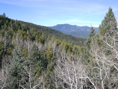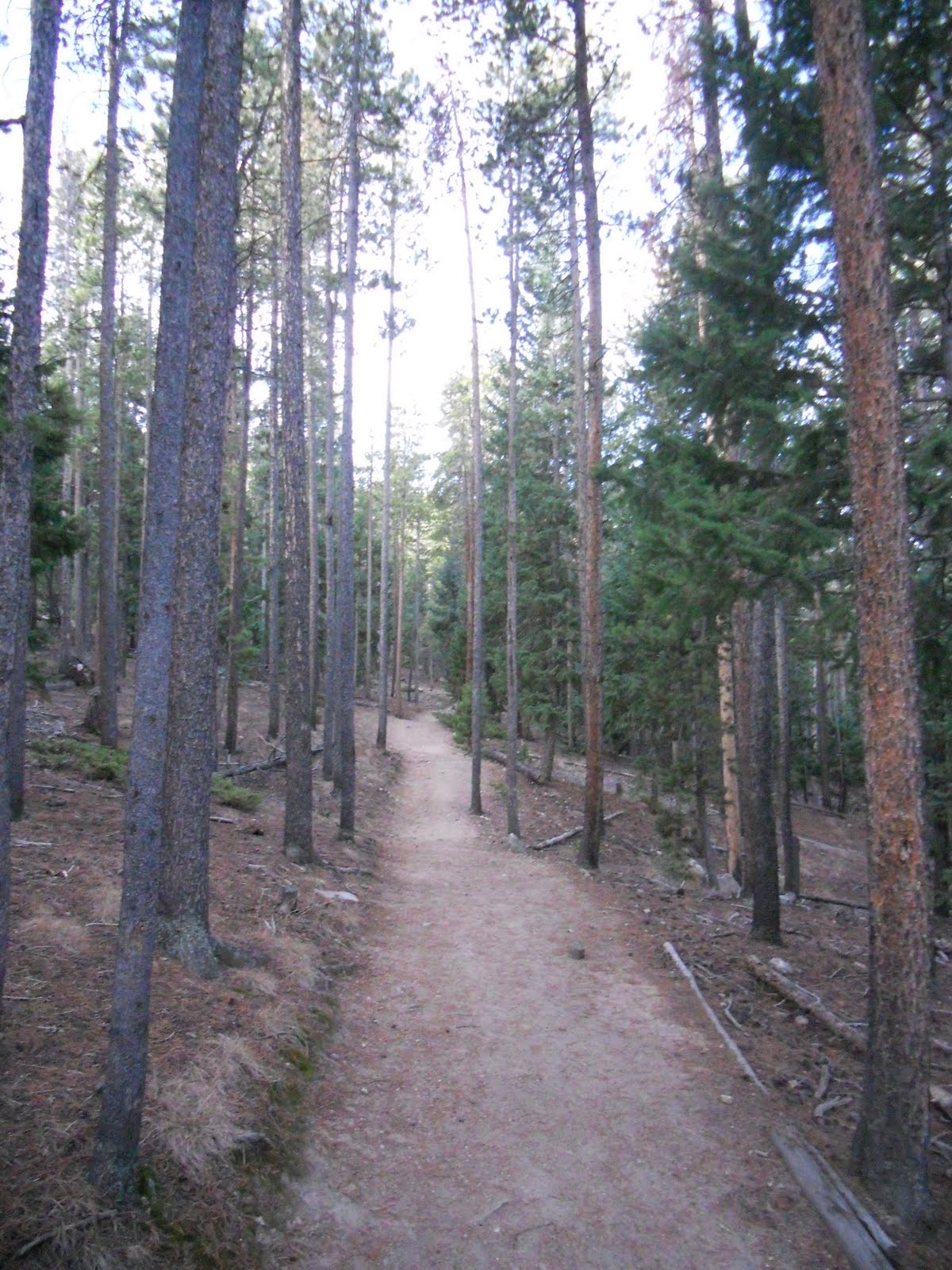 Huffing and puffing up the hill we continued on, occasionally taking a break to tie a loose shoelace. It was a good workout that filled our lungs with the thin mountain air that we’re not used to at only a mile above sea level. But it felt exhilerating, and we enjoyed the day with light conversation and stunning views of, ummmm…more trees. Yes, sadly, the boast of “nature at its best,” wasn’t exactly true. Views of Mount Evans (below) were fleeting, but generally we could’ve been dropped in the middle of more than a few forests and not known the difference.