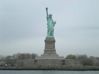 The next day started out quite interestingly with my cabbie encounter, but in the long run was a pretty good day. I had a lot of fun seeing the Statue of Liberty (above) and Ellis Island (below), even though the rain was whipping up around us with some pretty heavy winds.