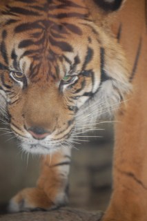 they’ve had one there for as long as I can remember. They actually have four on display now, but only one was out for public view during my visit.The tiger stalked around his cage looking for his dinner, which was recently put out, as he marked his territory. It seemed as though everyone at the aquarium could sense this as a crowd gathered and employees were in abundance to offer information and answer any questions people wondered about. I had nothing to ask, but happily listened in on several conversations as I snapped away.