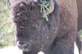 The most prevelant animal in the park seemed to be the bison. I saw them everywhere, and began to wonder, on my last day, why people kept stopping, and particularly getting out of their cars, to take pictures of them. The bison are really everywhere in the park, even on the road many times. Heck, I saw this one, as I was driving towards my cabin, walking up the mountain looking as though he had just got in a fight with a tree.