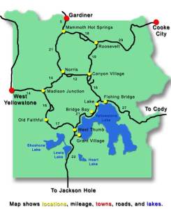 Satisfied at seeing my bear I climbed back in my car and decided to set off and drive the whole grand loop of the park. And while that may not look like much on the little map above, realize that Yellowstone National Park is as large as the States of Rhode Island and Delaware…combined!