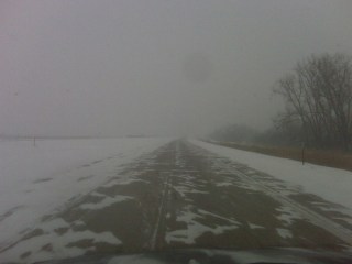 I couldn’t see more than ten feet in front of my car. My hazzard lights flashed and I took it slow, taking comfort the whole while that the winds whipped the roads dry, realizing that this couldn’t last all the way to the Twin Cities. Sooner or later I had to get out of this, and would providing no one rearended me, so I pushed on. Ultimately, around Mankato, the road conditions cleared and I zipped on home with all due haste.