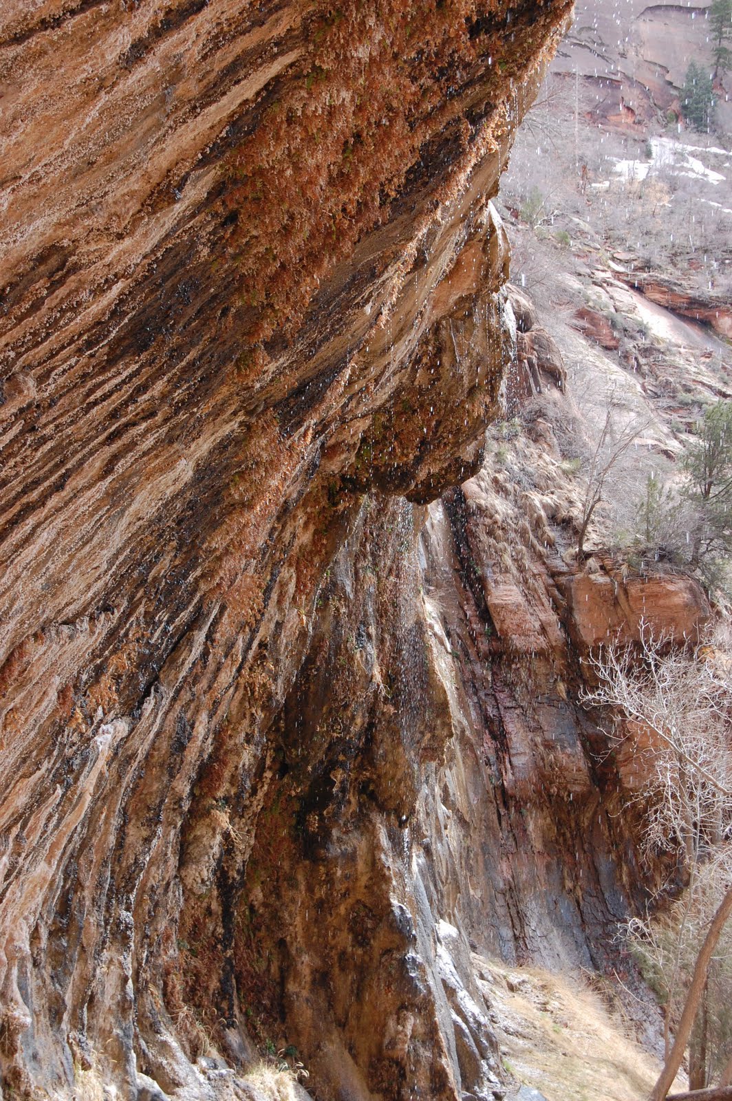 stop as I didn’t have much time to do anything else but this before heading down to Las Vegas to meet my friend for my big birthday getaway. I was quite pleased with the stop and happy that I chose it. A waterfall cascaded over a little cut out in the rock, where we stood, to make it look like the rock was weeping. It was really an interesting effect and one I stopped to take some time to appreciate, especially as there was a fantastic view back (above) into the canyon from there.
