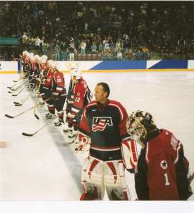 Yes, that’s right, we had front row seats to see the U.S. men play Finland in their first game at the Olympics. How I got the seats, I wouldn’t tell him, as it was a gift that he should enjoy. And enjoy we both did as the U.S. walked all over Finland 6-0. They went on to win the silver medal in Salt Lake City, losing their first Olympic game ever on U.S. soil to Canada. It was an amazing treat for both of us and a game I’ll never forget as I sported a great sweater and hat that my sister gave me for Christmas just before we left on our trip.