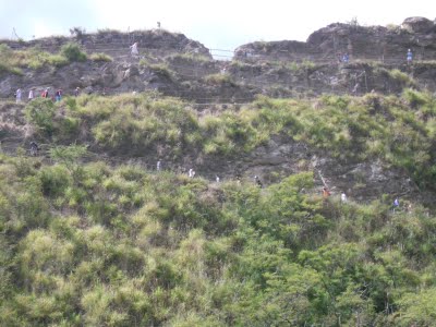 I practically ran up a paved portion of the trail and cut up a series of unpaved switchbacks (above) leading to the top. My legs ha
