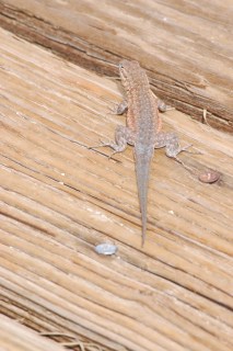 mother than she thought the pupfish were having sex. And, sure enough, that’s exactly what the little critters were doing. By rubbing up against each other, the pupfish were somehow procreating. I momentarily stopped to watch this and then decided I ought to give them their privacy. So, instead of lingering, I continued on the trail finding another promiscuous party: a small lizard I spotted on the boardwalk, according to a ranger, apparently turns shades of orange when she is pregnant.