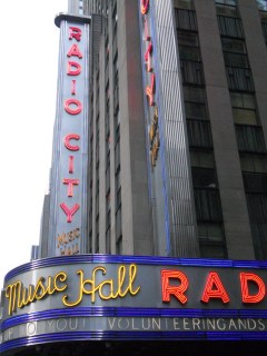 We were all starting to get a bit hungry, so we headed back down to street level for some food cart delights in the plaza that plays host to the winter Christmas tree and ice skating rink. There, just outside of Radio City Music Hall, we met up with another favorite travel blogger of mine, Solo Friendly, also known as Gray, for a bit of post-TBEX talk and picture taking of some of the sights around the rest of the Rockefeller Center. It was really