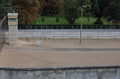 I stood in a tower in what was once the French sector of Berlin. From the metal perch I could see a preserved section of the Berlin Wall; guard towers, a lighted sand field – once known as the de