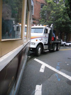 One block after getting stuck in the trolley near the top of the hill, I was at the edge of Chinatown. And yes, I admit it, I waited patiently on the trolley for nearly fifteen minutes just so I could ride it for one more block. I paid the five dollars to ride it and – left turns be damned! – I was going to get my money’s worth on the ride. So, I waited for the big truck to push us forward, all for just one more block. After all, it was a San Francisco treat.