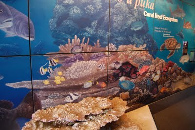 Likely entranced by the smell of taffy, I missed it the first time walking past. I was thrilled with my discovery and eagerly walked through the rooms learning about the marine sanctuary that compromises the atolls and reefs – from Nihoa to Kure Atoll – to the northwest of the main islands of Hawaii. If they were stretched out on the mainland, they would extent from approximately Houston, Texas to Las Vegas, Nevada – a great distance for plots of land that most people have never heard of, including myself.