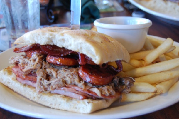 The plate was set down in front of me. My eyes were wide. I was looking at the sandwich to end all sandwiches. It was more pork than any one pig should ever have, and there it was, piled beautifully high on focaccia bread, all for me and my greedy claws.