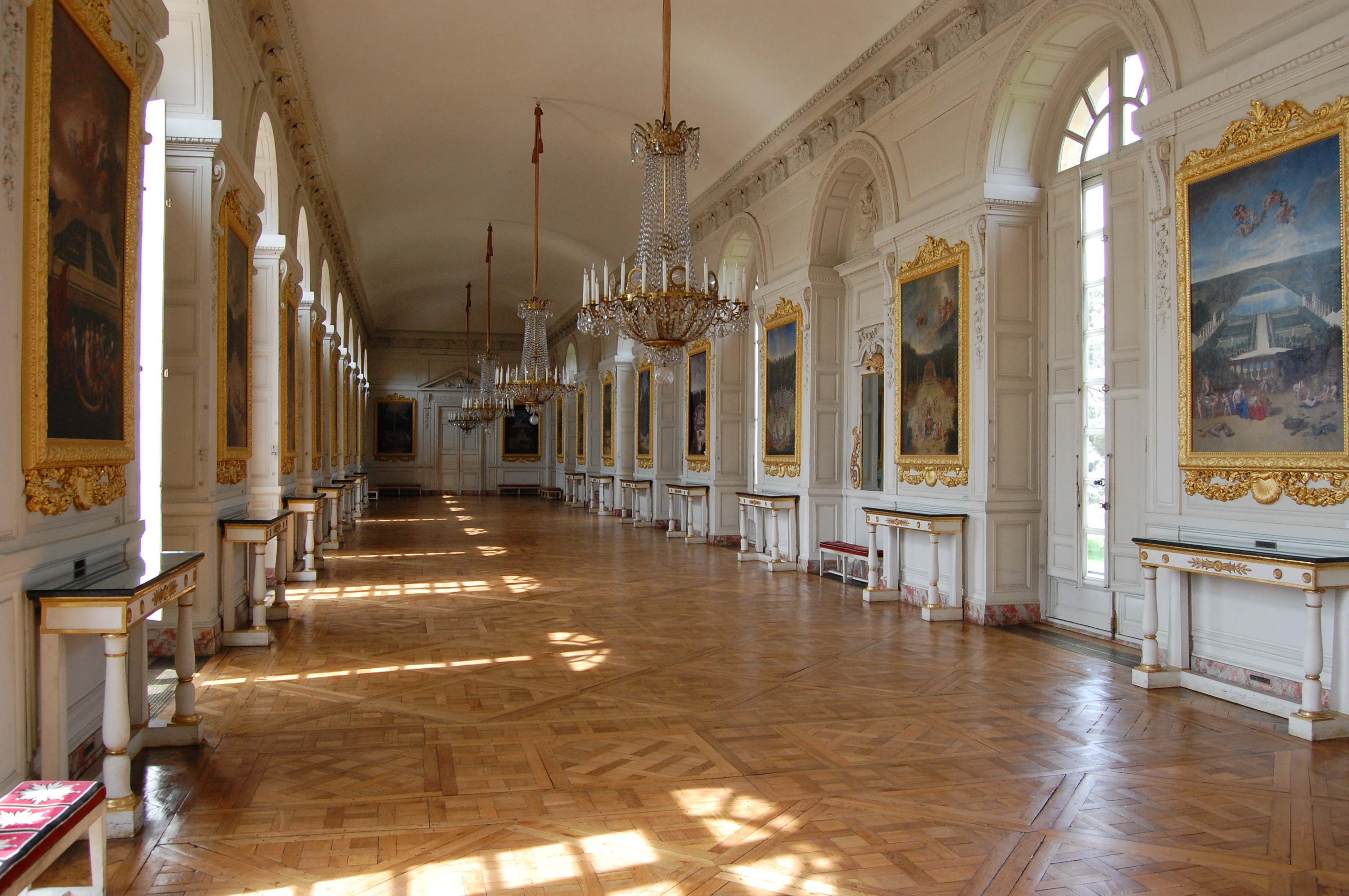 Walking though Marie Antoinette’s Petit Trianon at France’s Palace of Versailles.