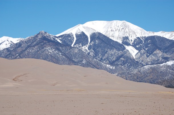 MUST SEE: The snowcapped mountains in the spring from atop the sand dunes.