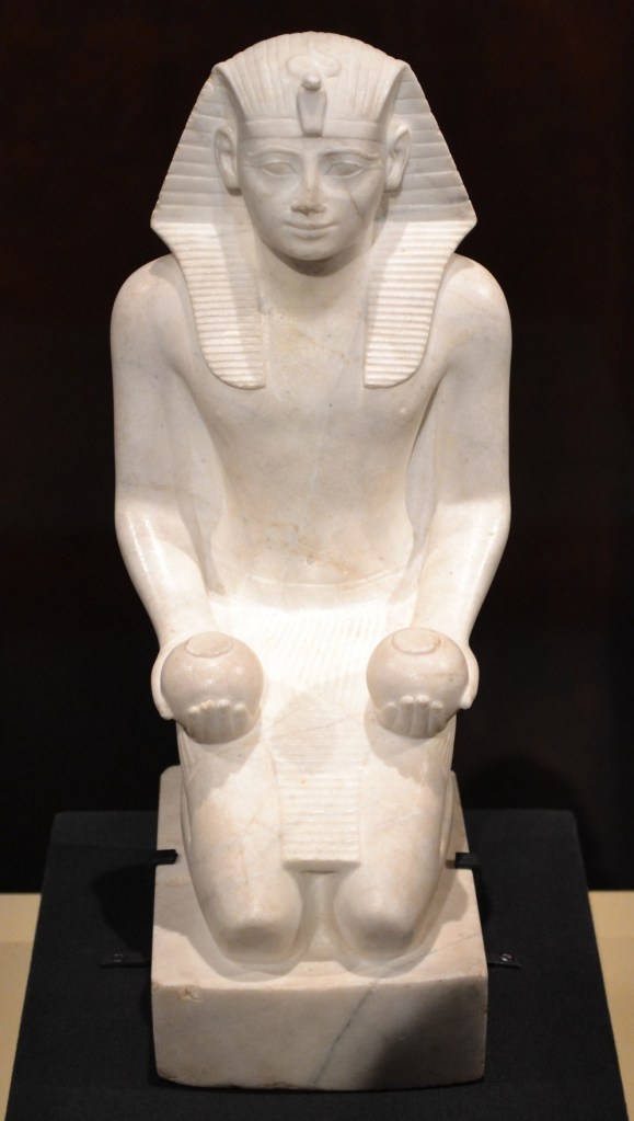 The King Tut exhibit at the Seattle Pacific Science Center is laid out in the same order as it was in Denver. So, as the case may be, relics of Ramses the Great (left) and other Pharaohs are on display first. So that means not everything is exactly in chronological order. For instance, the death mask of Psusennes is on display before anything of King Tut’s. And Psusennes reigned in the Twenty-first Dynasty, approximately 300 years after King Tut in the Eighteenth Dynasty.