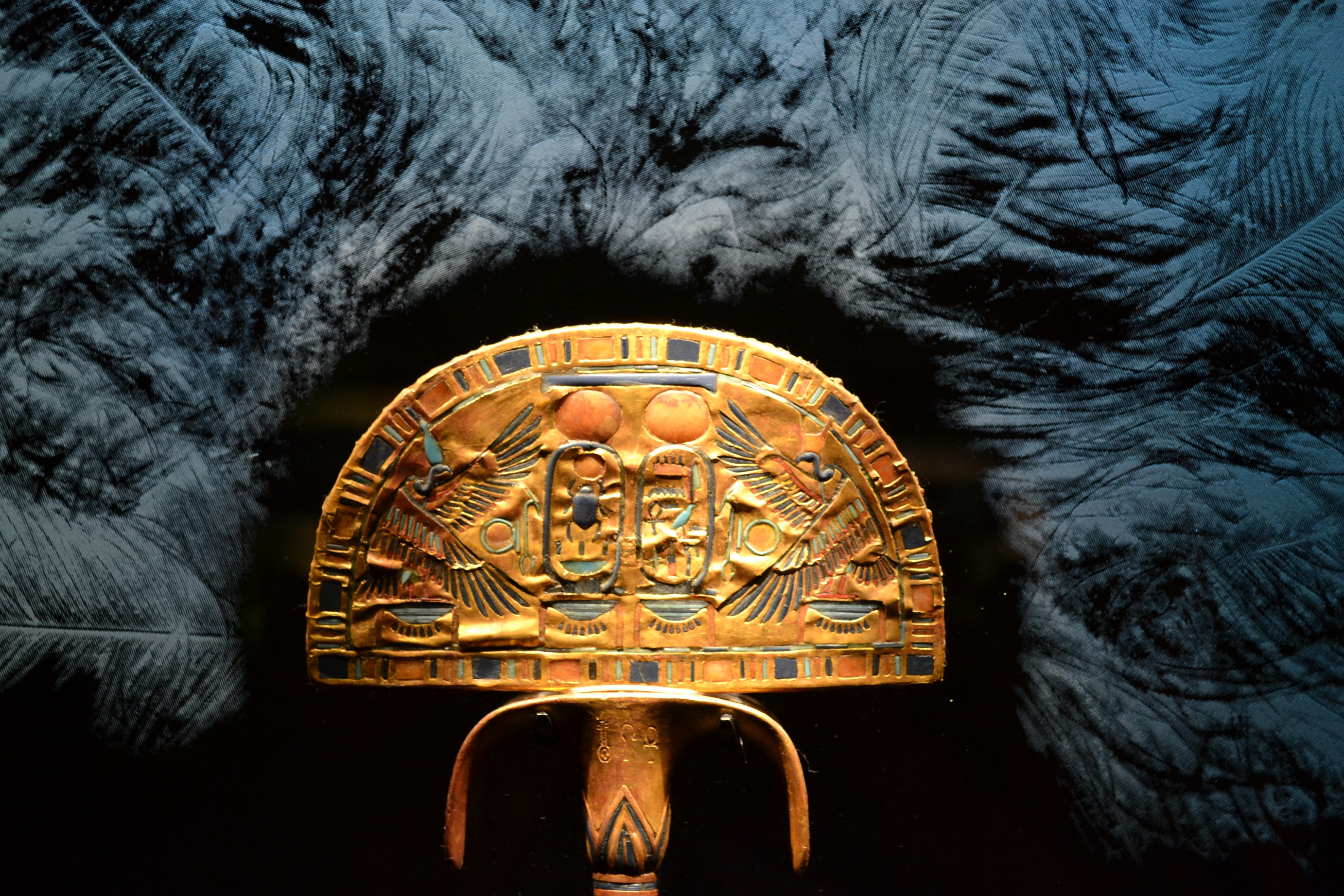There were several other items that also really impressed me. But, then again, it’s hard not to be impressed when surrounded by so many priceless artifacts that you’ll likely never lay eyes upon again. They’re all so stunning, especially when put into the context of when and how they were made. Some of my favorite of King Tut’s artifacts, in order, were his tiny canopic coffinette, his canopic container, the fan, and the final item of the whole exhibit – the Emblem of Anubis.