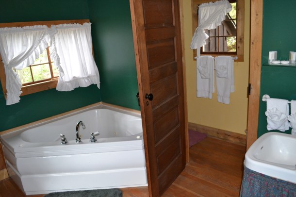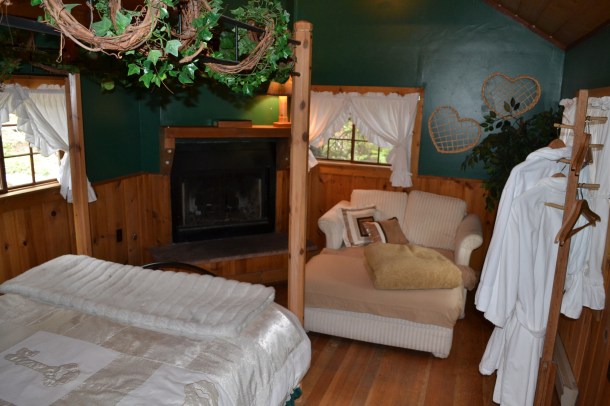 I spent most of the remainder of the evening in my cabin simply relaxing. It was comfortable with an over-sized cushy chair next to the fireplace, a large soft bed, and a huge Jacuzzi-style bathtub separate from the shower. The room was obviously made for a romantic weekend away, but I was not going to let that bother me during my stay alone. I was excited about the extra space all to myself. I was comfortable and, dare I say cozy, all on my own under a nice, warm blanket with a book.