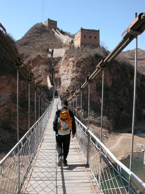 Crossing a bridge at the Simatai section of the Great Wall of China.