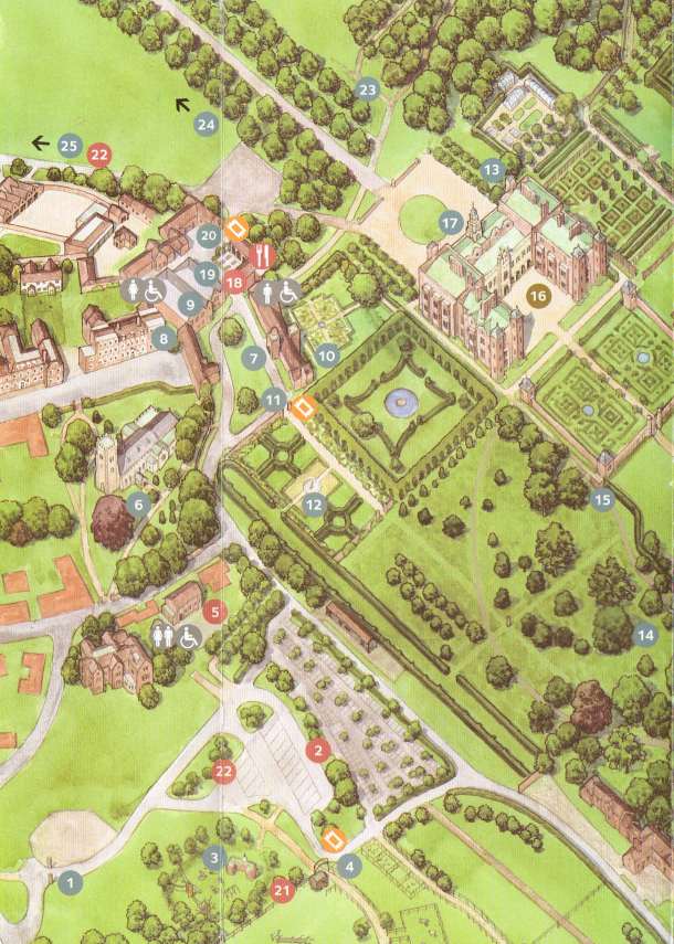 Unable to take photographs inside, we wandered through the old Jacobean house reading the placards and talking with the staff to learn more about the home. Apparently it was first built in 1611 by the chief minister to King James I, Robert Cecil, and is still in use today by his descendent, the 7th Marquess of Salisbury Robert Gascoyne-Cecil. Because the Cecil family still occupies it, only part of the home and gardens are open for public tours.