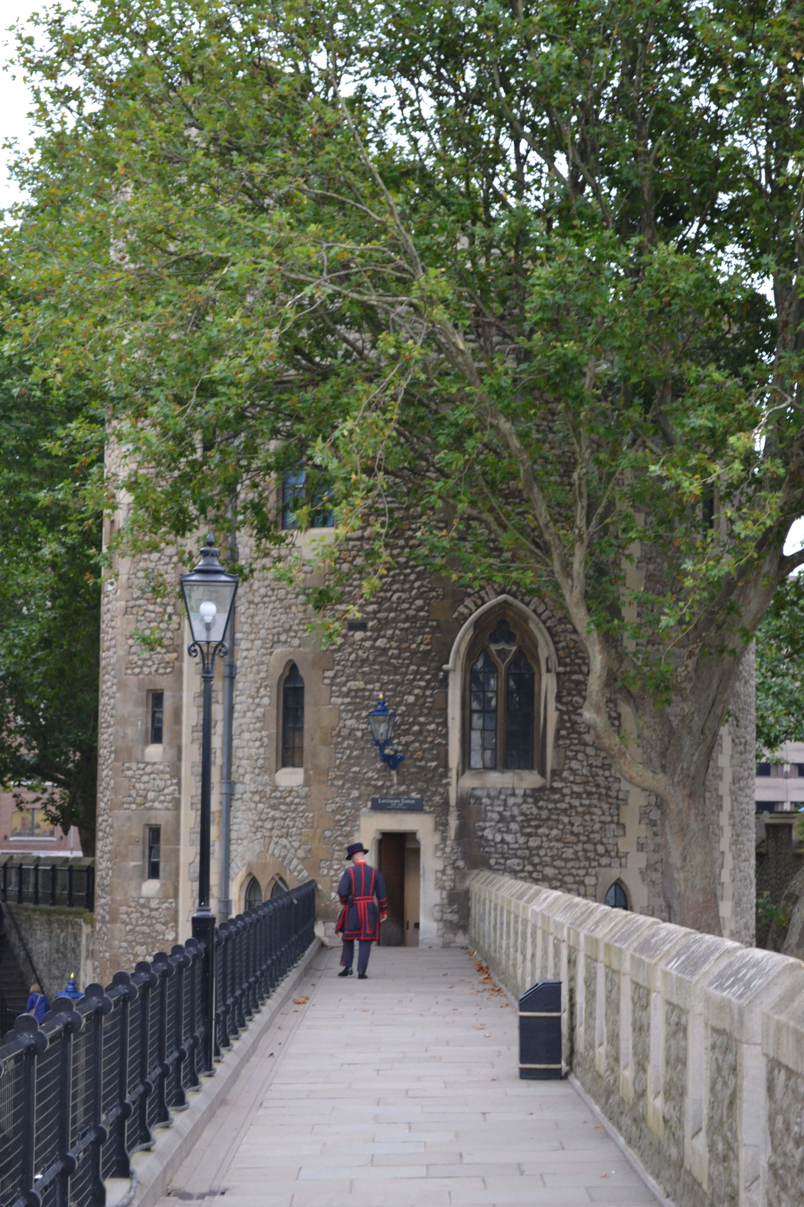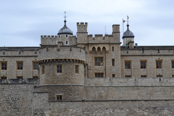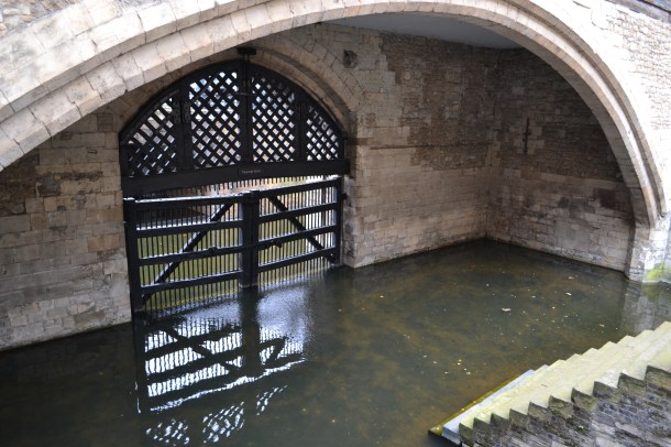 From the Tower of London ticket office we walked through the main entrance and under the Bywater Tower. We rushed along Water Lane, a pathway between the two walls of the Tower, and on to the other side of Traitor’s Gate (above). Only moments before we stood at the outside of the gate, which is best known for the gate where the heads of those who were executed were displayed on pikes. Some of the most notable prisoners who entered through the gate, which was built by Edward I to provide a water gate entrance into the tower, are Queen Anne Boleyn, Sir Thomas More, and Queen Catherine Howard.