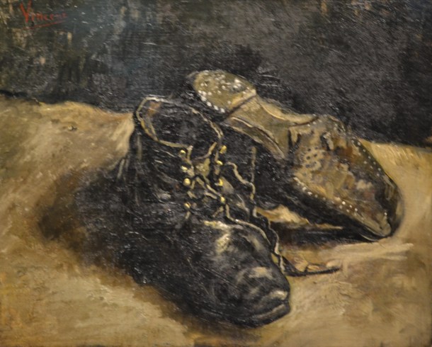 Staring at works like A Pair of Shoes, One Upside Down and other still-life works in the first gallery made me reevaluate what little I knew of Van Gogh before walking into the exhibit. Since I first heard the name Vincent Van Gogh and seen one of his paintings I had associated him with landscapes and portraits, largely with small or short brushstrokes influenced by his neo-impressionist contemporaries who were doing art with dots. But this, a painting simply of an old pair of shoes, wowed me beyond what I could have expected. My amazement continued to grow as I continued through the exhibition.