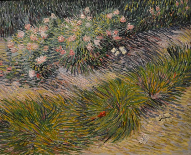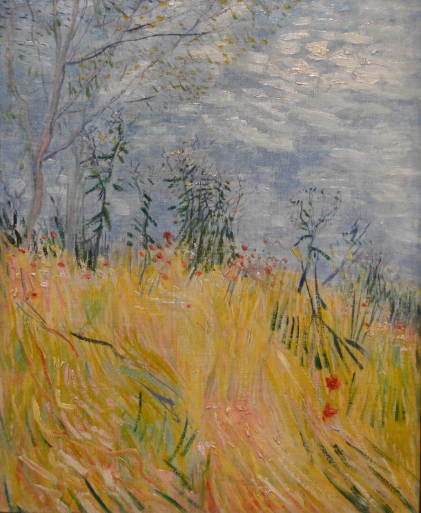 His beautiful use of color in relatively ordinary and mundane scenes is what I have always loved. And it was in these last rooms where I connected with what I had also associated as Van Gogh, and what impressed me about him so. A simple look at grass, or a wheat field, or even just a Riverbank in Springtime (1887) is what I’ve always loved. It’s relaxing, calming even, to admire the work, the subtleness yet brilliance of the color, and imagine I too am there, toes up and arms stretched behind my head, listening to the quite babble of the river as it runs by.