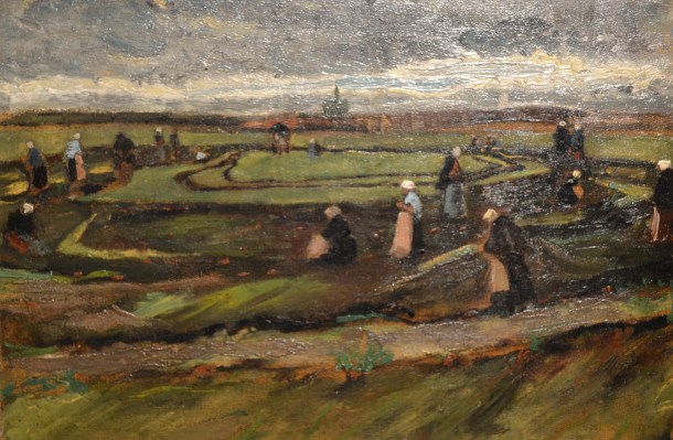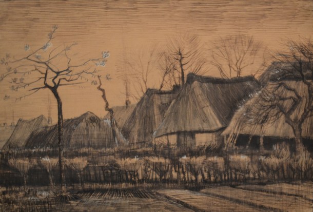 I heard Standring mention previously that Van Gogh trained himself in pen and ink and pencil, through a lot of sketching; approximately 1,000 sketches, Van Gogh completed, in his lifetime. But still I did not expect to see something like the Thatched Roofs, 1884, on display impress me so much. It was another piece, quite simple really, which I could not take my eyes off of. The same could be said for several other of what I considered to be very un-Van Gogh pieces I saw in that hall, as well as the next…