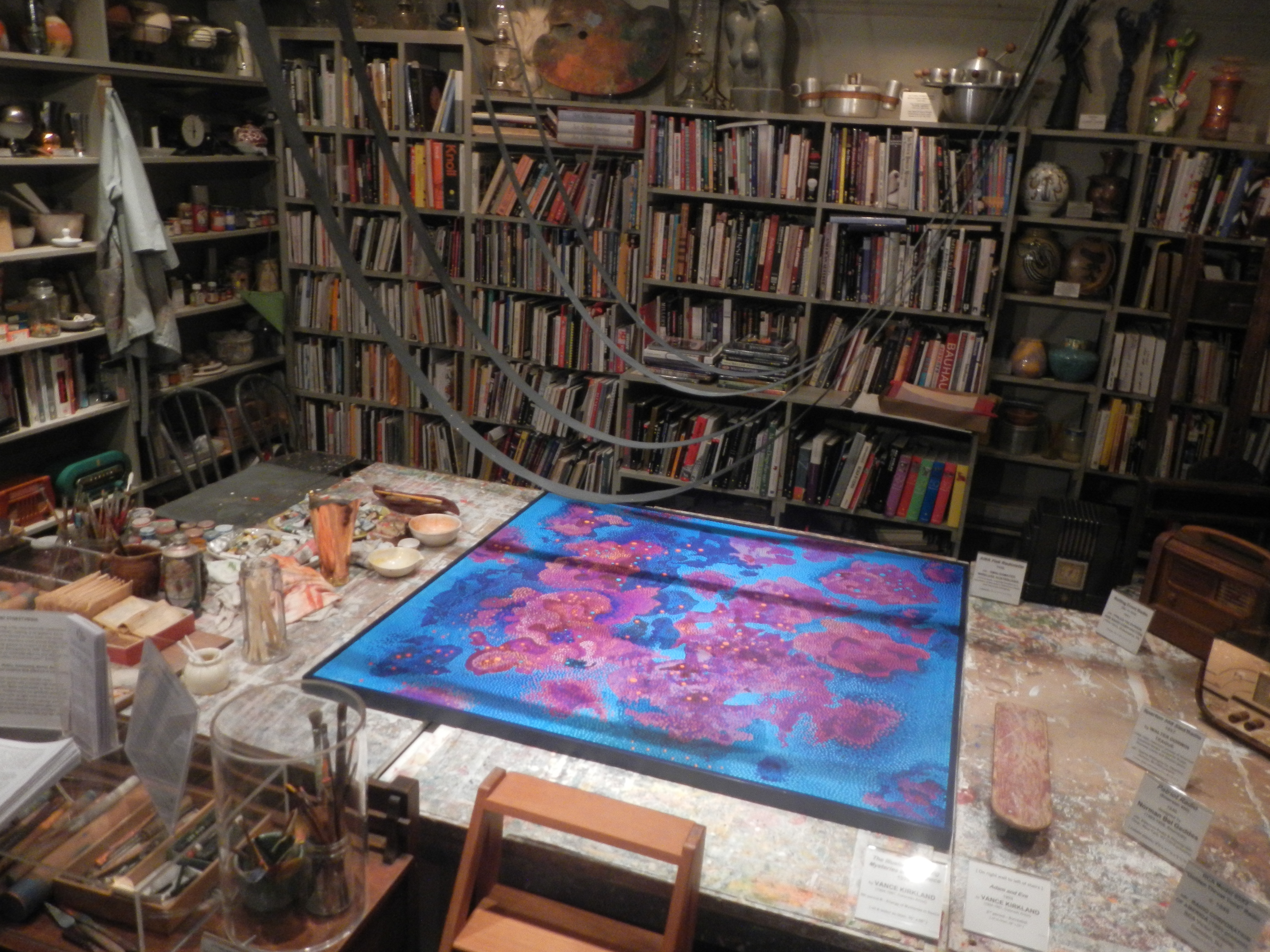 We didn’t spend a lot of time in the Kirkland. Glancing at pieces here and there, we quickly moved through the various rooms. Many of the pieces hanging on the walls – paintings which I actually identify as art – were interesting and well done, but others seemed to be no more than what they are – furnishings and dishes. Chairs, serving platters, tables and the like are just that to me, furniture and cutlery. I appreciate the thought and care in their design, but have a difficult time identifying them as art. But that’s what the Kirkland is all about.