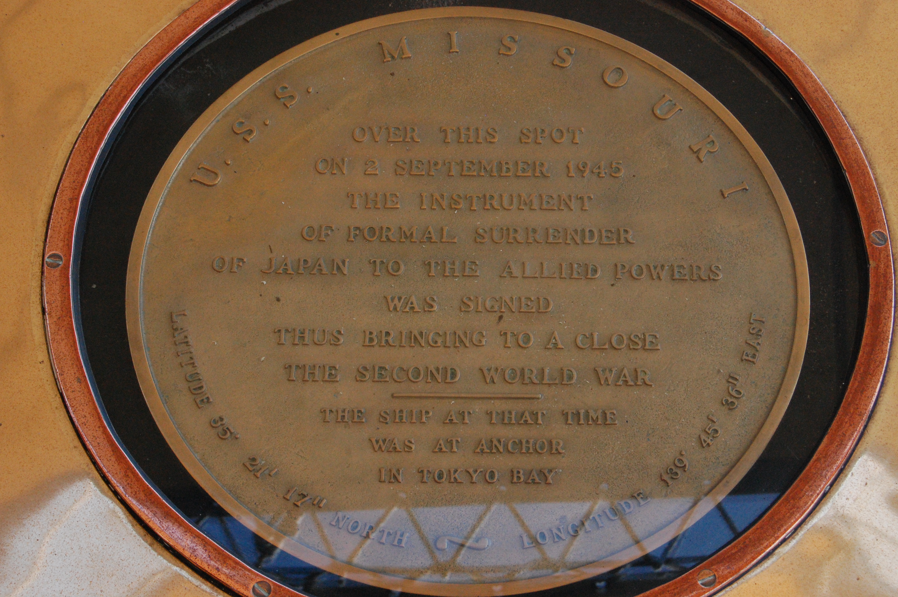 The spot on which the Japanese surrendered to the Allies to end World War II