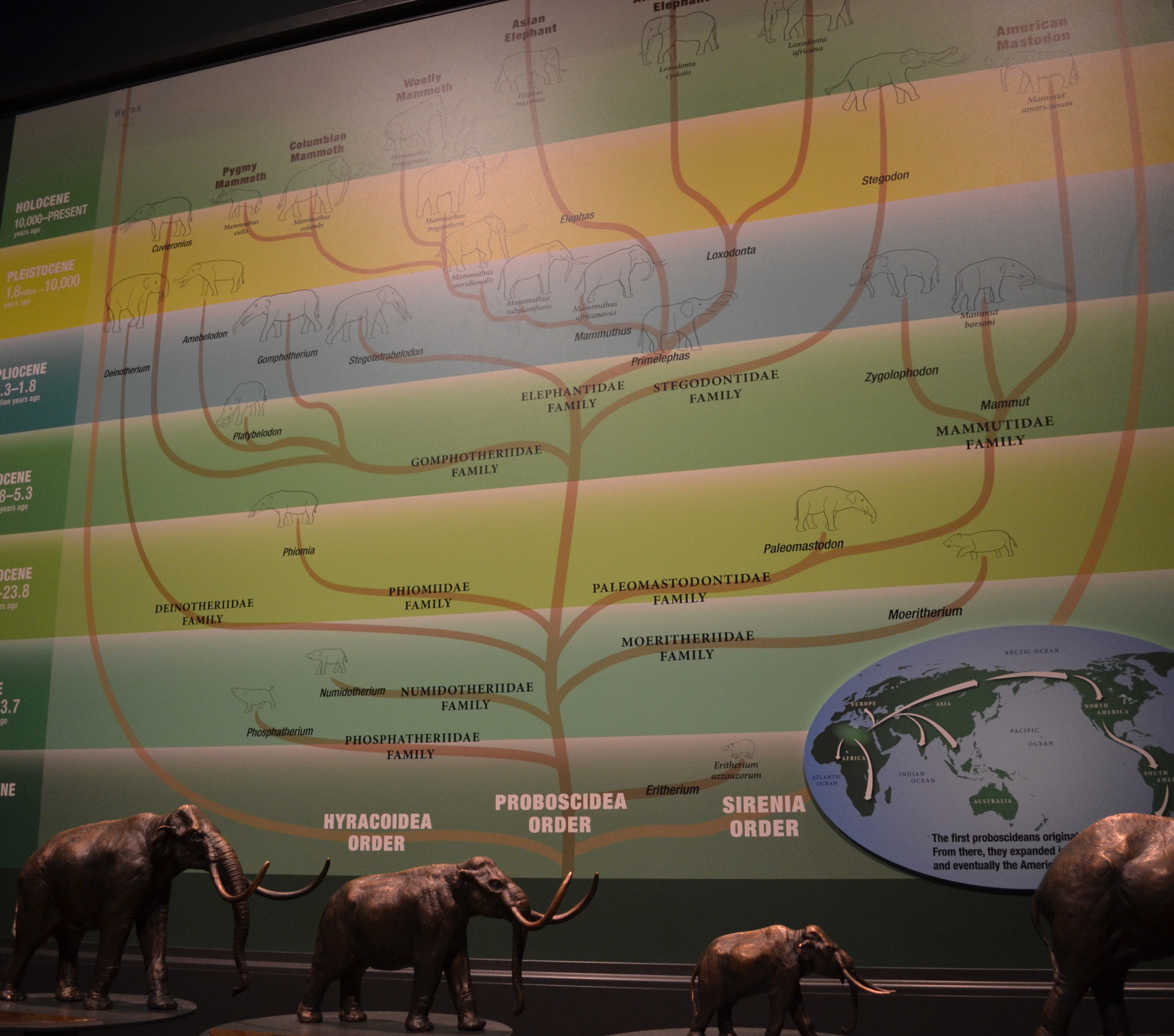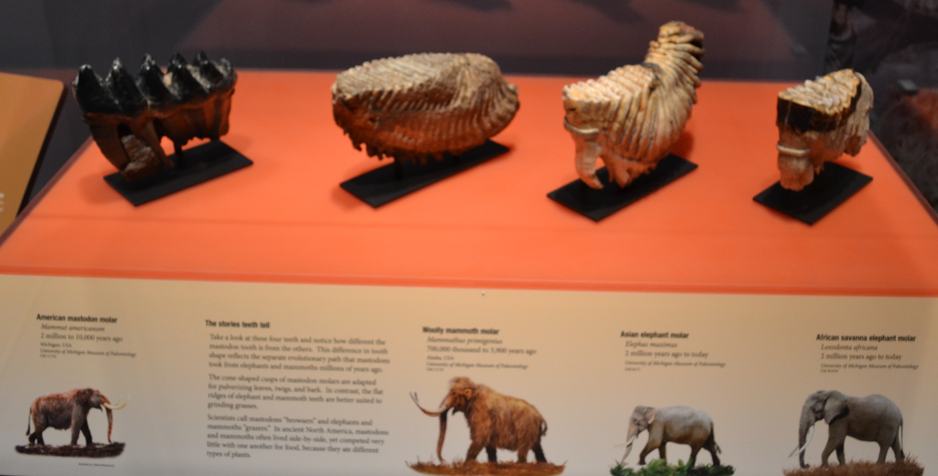 By the basic look of the animals, I would have assumed elephants today would be more closely related to yesterday’s mastodons. But it just ain’t so, and an interesting sort of family tree shows how the relation to mastodons is so much further back for elephants than that of the woolly mammoth. Other comparisons and similarities, like that of their teeth, are also shown, giving a greater perspective on just how different the mastodons are compared to mammoths and elephants.