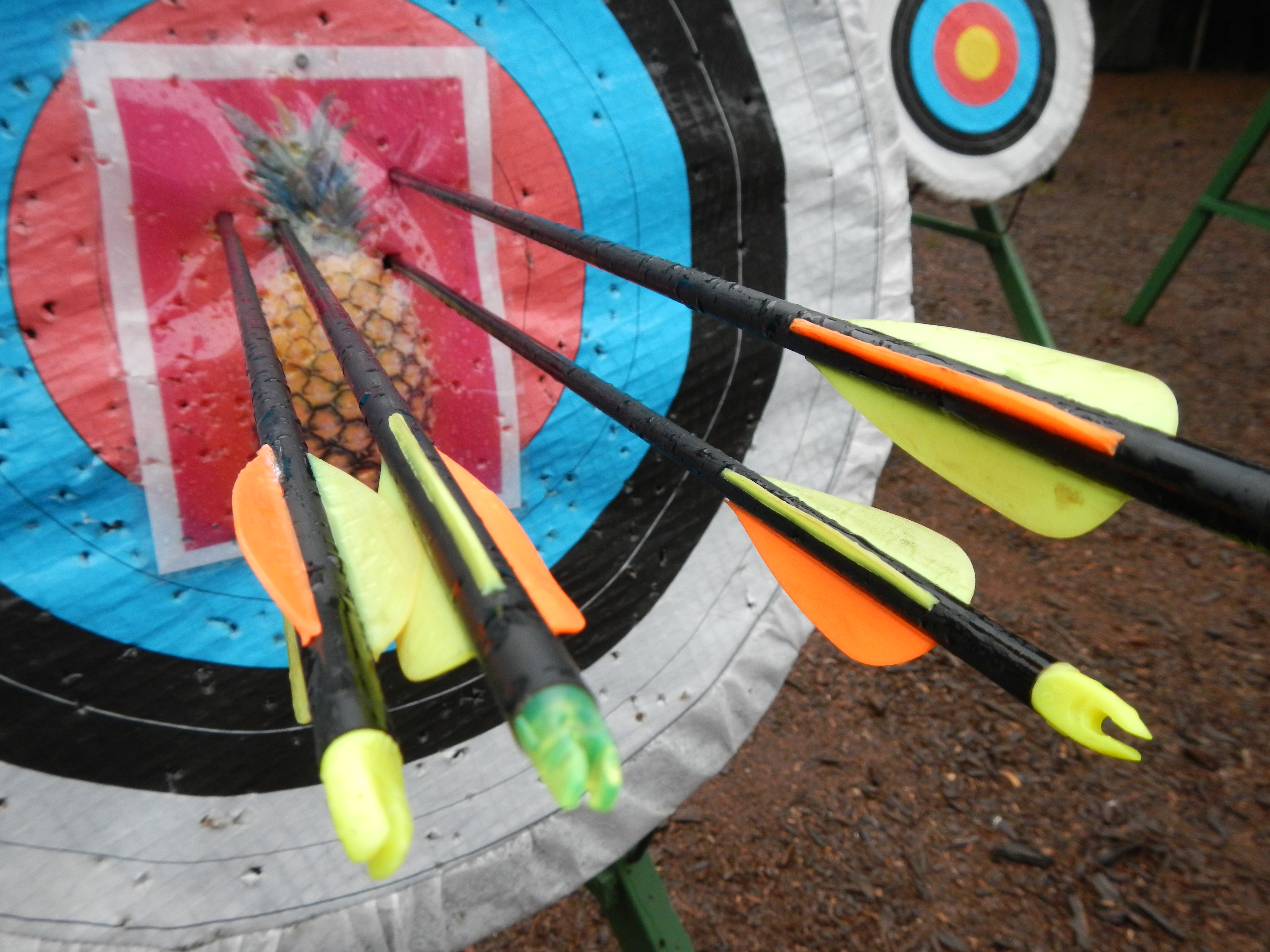 ???????????????????????????????I had nothing against little clay pigeons – or other fake animals, for that matter – so I opted for the archery range. Besides, the pineapple on the target looked oh so smug hanging there, daring me to shoot it. And shoot it I did, repeatedly. Again and again I filled the pineapple full of arrows, only occasionally missing the target altogether. It was a blast, as much fun as the ride up, since it reminded me of those days long since gone.