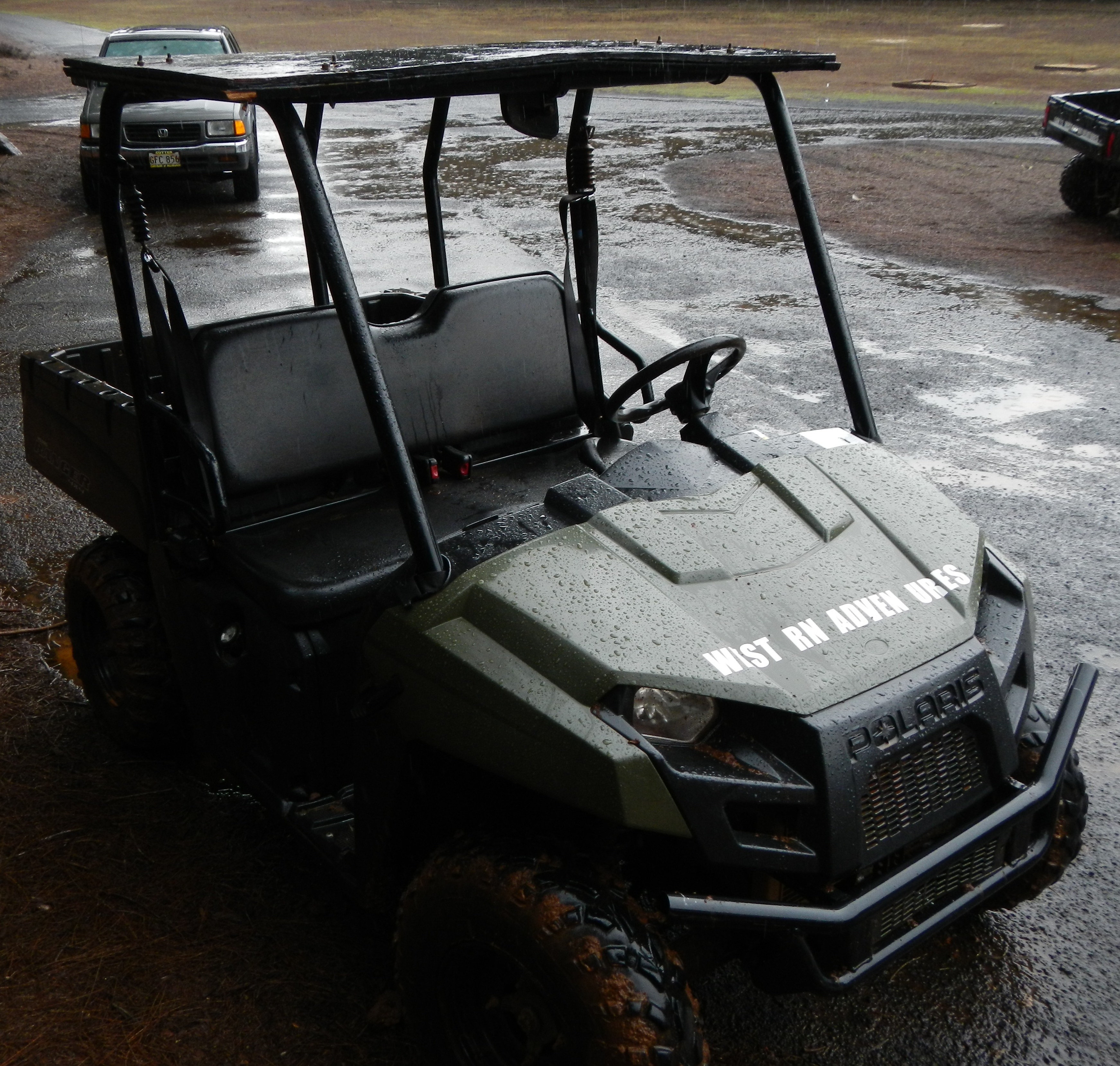 ???????????????????????????????Shortly after the Lodge at Koele courtesy shuttle dropped me off at the nearby Stables at Koele, I was out on a muddy trail in a UTV. What’s a UTV? Remember the golf cart on steroids? Yeah. That’s it, an off-road golf cart. And I zipped along on it with a guide, bouncing and skidding along on the muddy trails which used to be roads for the Dole Pineapple Plantation that once occupied much of the island of Lanai.