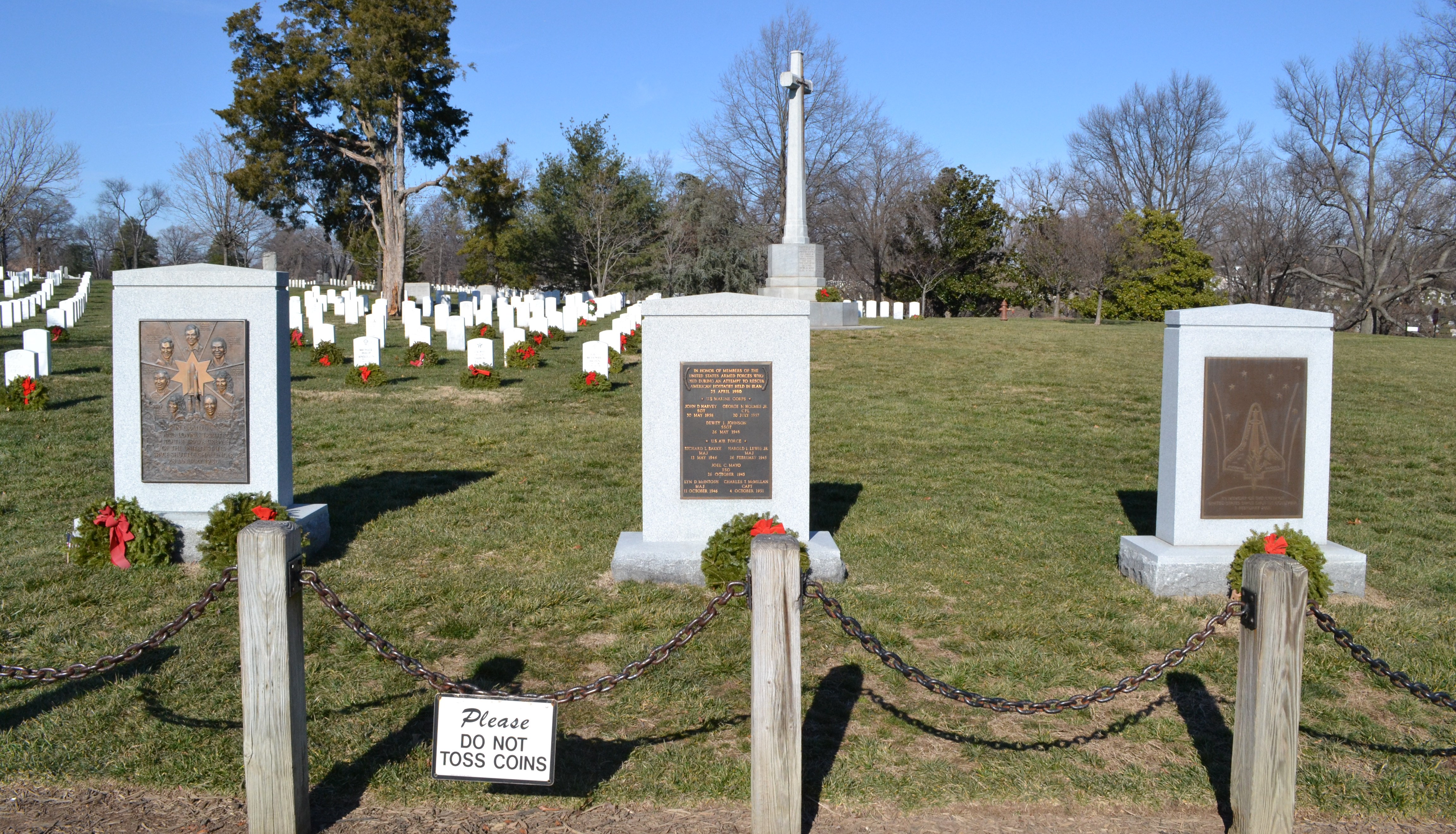 Memorials for those who died in the Space Shuttle Challenger and Columbia, and in the rescue of hostages in Iran