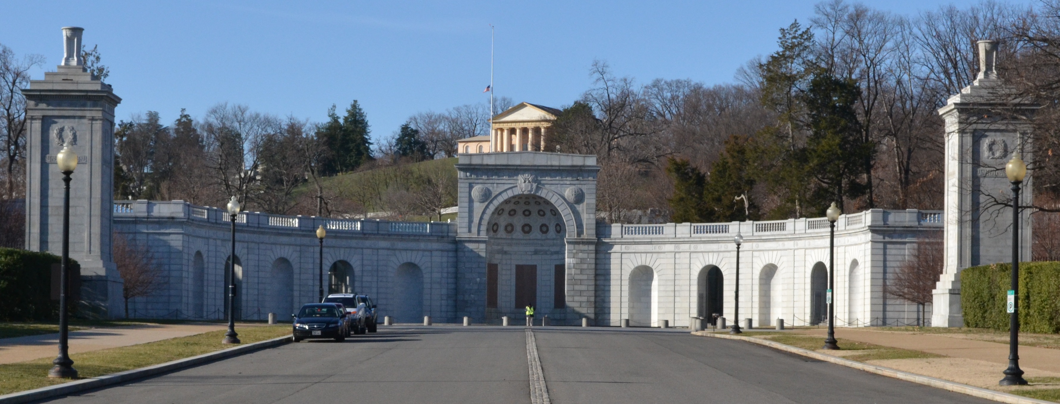 I emerged from the Arlington Cemetery Metro stop, looking the length of Memorial Avenue from the Lincoln Memorial behind me on the National Mall to the Women In Military Service For America Memorial ahead. The memorial was dedicated in 1997 as a tribute to women who have defended American in the past, do so in the present, and will in the future.