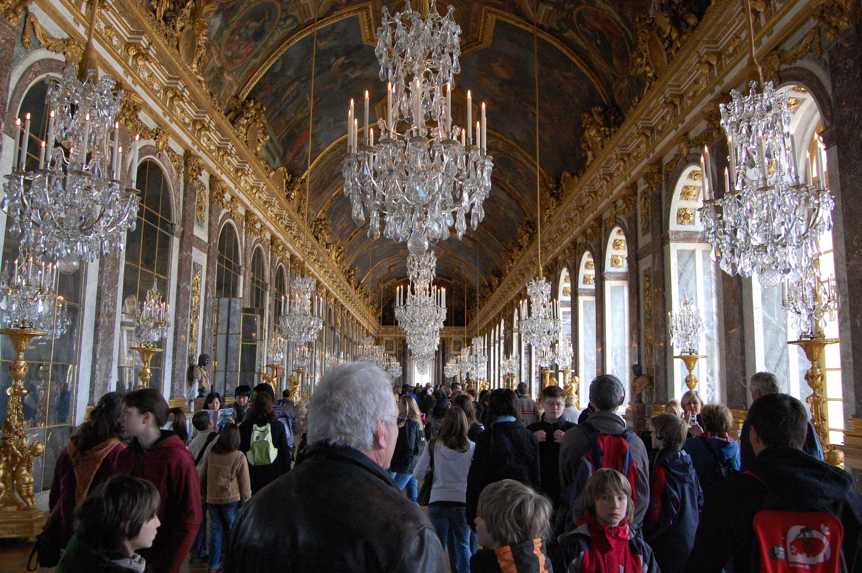The insanely jeweled and ornate Hall of Mirrors in France’s Palace of Versailles.