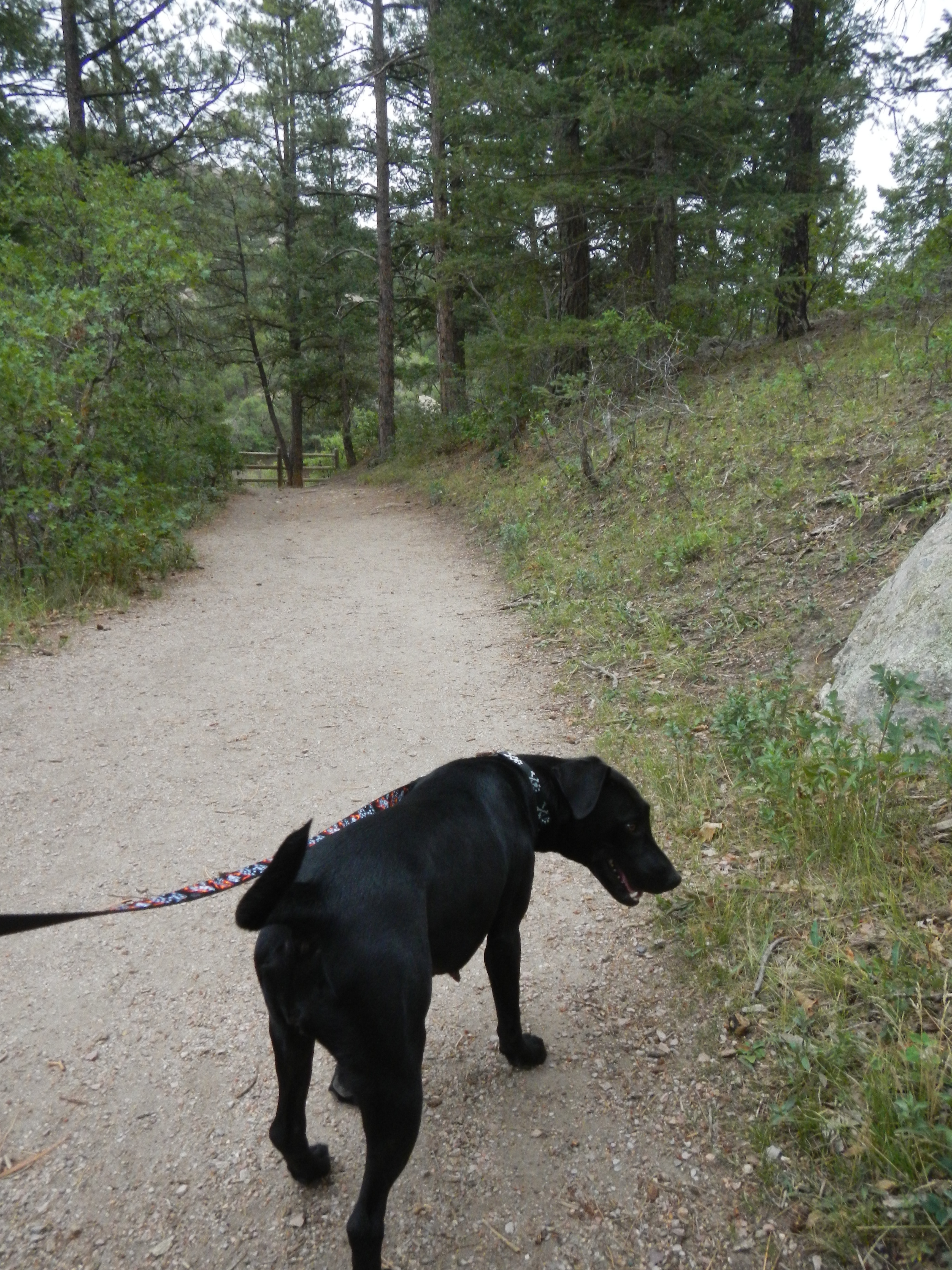 As soon as we hit the trail, Anna was shaking with energy. Everything was just so exciting and such a new adventure, that I about thought she was going to burst with all of her happy energy. She was insane with eagerness. Seriously. After about a half mile of her clawing at the ground army-crawl style in an effort to get me to move faster, I had to scold her. She was choking herself silly on the leash, and it just wasn’t a good experience for either of us.