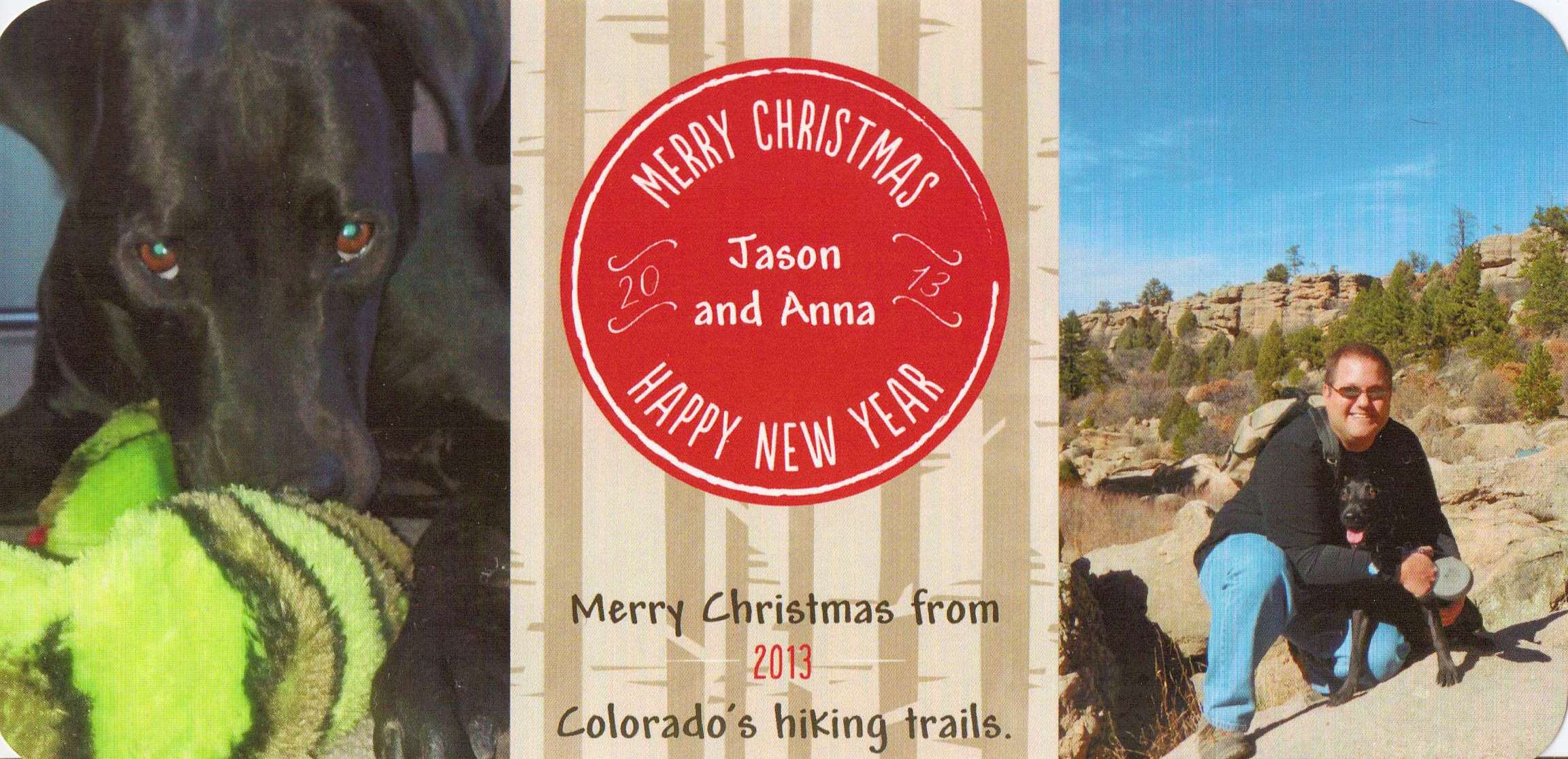 In all of that, I leave out all of the great times I had in Colorado this past year. There were a bunch, too, especially after I got Anna the Puppy. She’s been the biggest thing to happen to me in 2013, which is why I suppose she’s the lucky dog on this year’s Christmas card. I’m looking forward to a bigger 2014 with her. We’ve only had a few months together now, so a full year of shared adventures should be even better. Speaking of which, there’s a lot on my plate for 2014. What will it be? A return trip to the Big Sur? Somewhere else? Well, that’s all for next week’s post. Until then, I wish you all a very Merry Christmas!