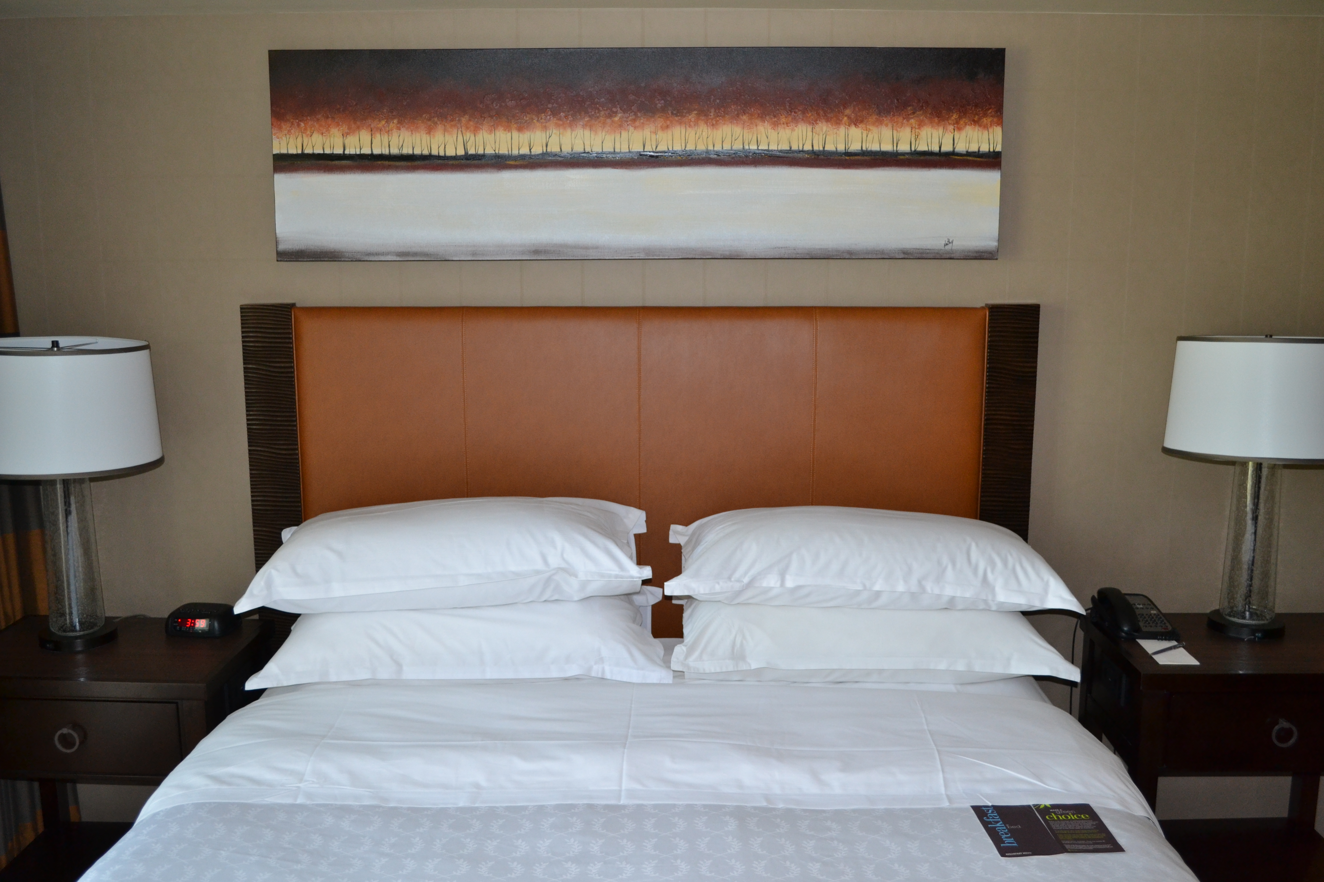 The hotel’s exterior is not postcard material, but the inside is certainly beautiful; several times I asked my friend if we were actually staying at a Sheraton. The lobby appeared to recently be redone, the grounds well-kept and lovely with a peaceful man-made river on the back side, and several indoor activities were available for guests, including the pool, spa, and yoga.