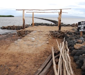 A view of the wall around the Ka Honua Momona fishpond on Molokai, Hawaii.